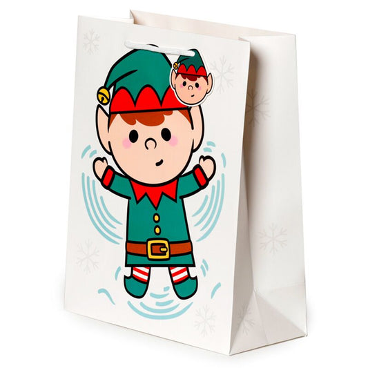 Pungă cadou Crăciun, Gift Bag, design festiv cu spiriduș