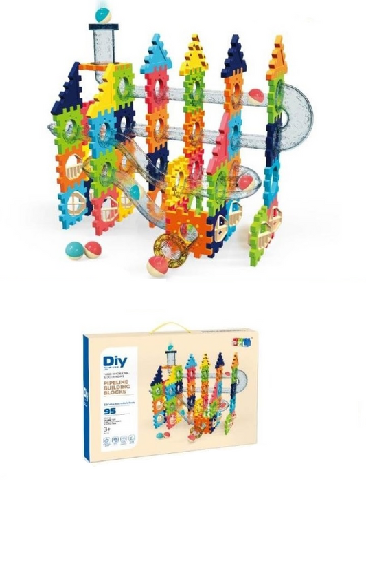 Set construcție cu piese de îmbinat/asamblat, conducte și biluțe, Building Blocks Pipeline, 95 piese