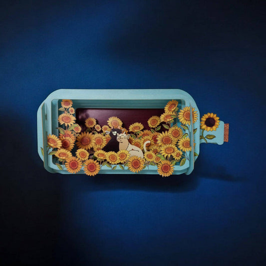 Felicitare 3D Message in a Bottle, Pisici printre floarea-soarelui