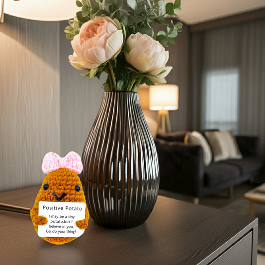 Mascotă croșetată, model cartof cu fundiță, Positive Potato