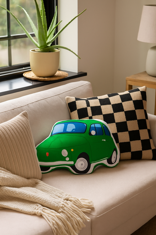 Pernă plush în formă de Fiat 500, 23 x 34 x 8 cm – model verde, perna decorativă