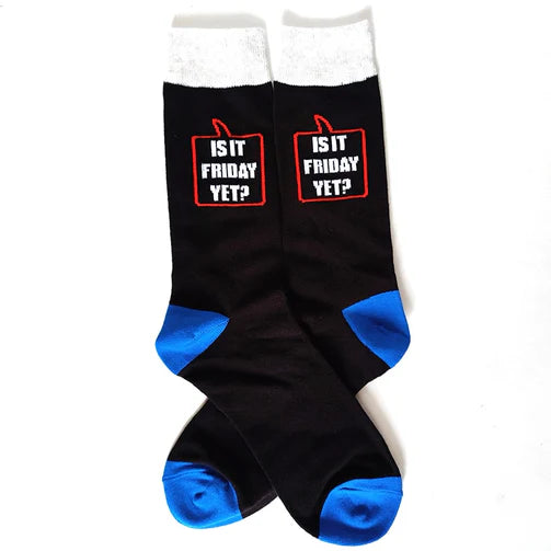 Îți prezentăm șosetele amuzante: „Is it Friday yet?”