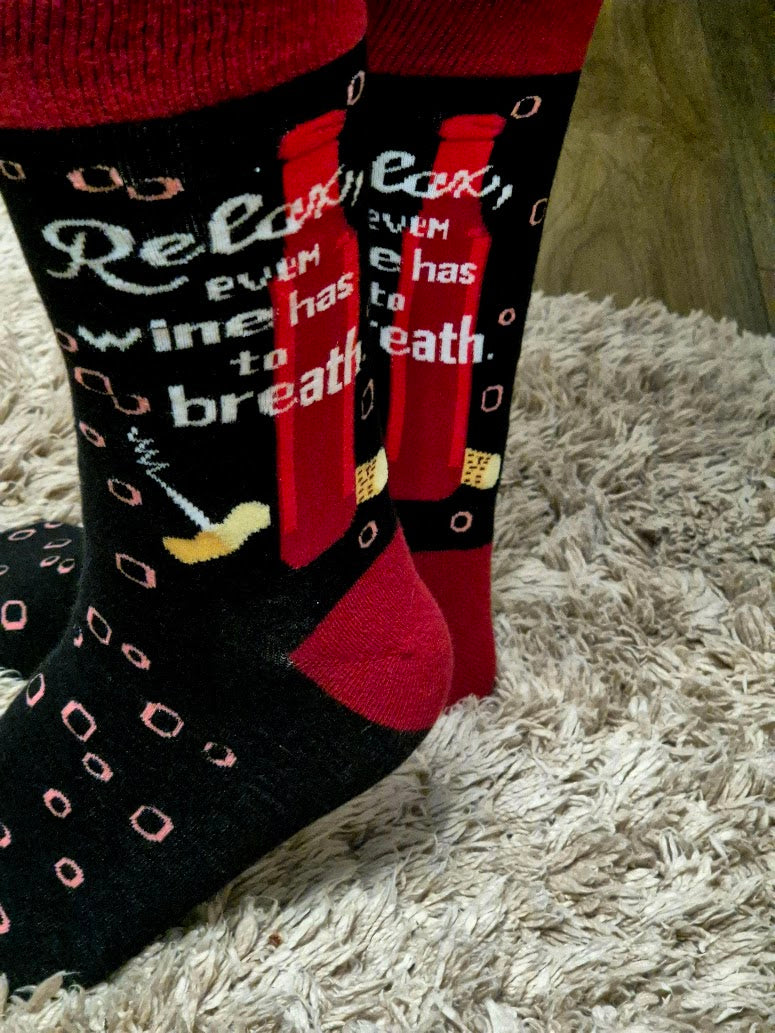 Iti prezentam sosetele amuzante:„Relax, even wine has to breath”
