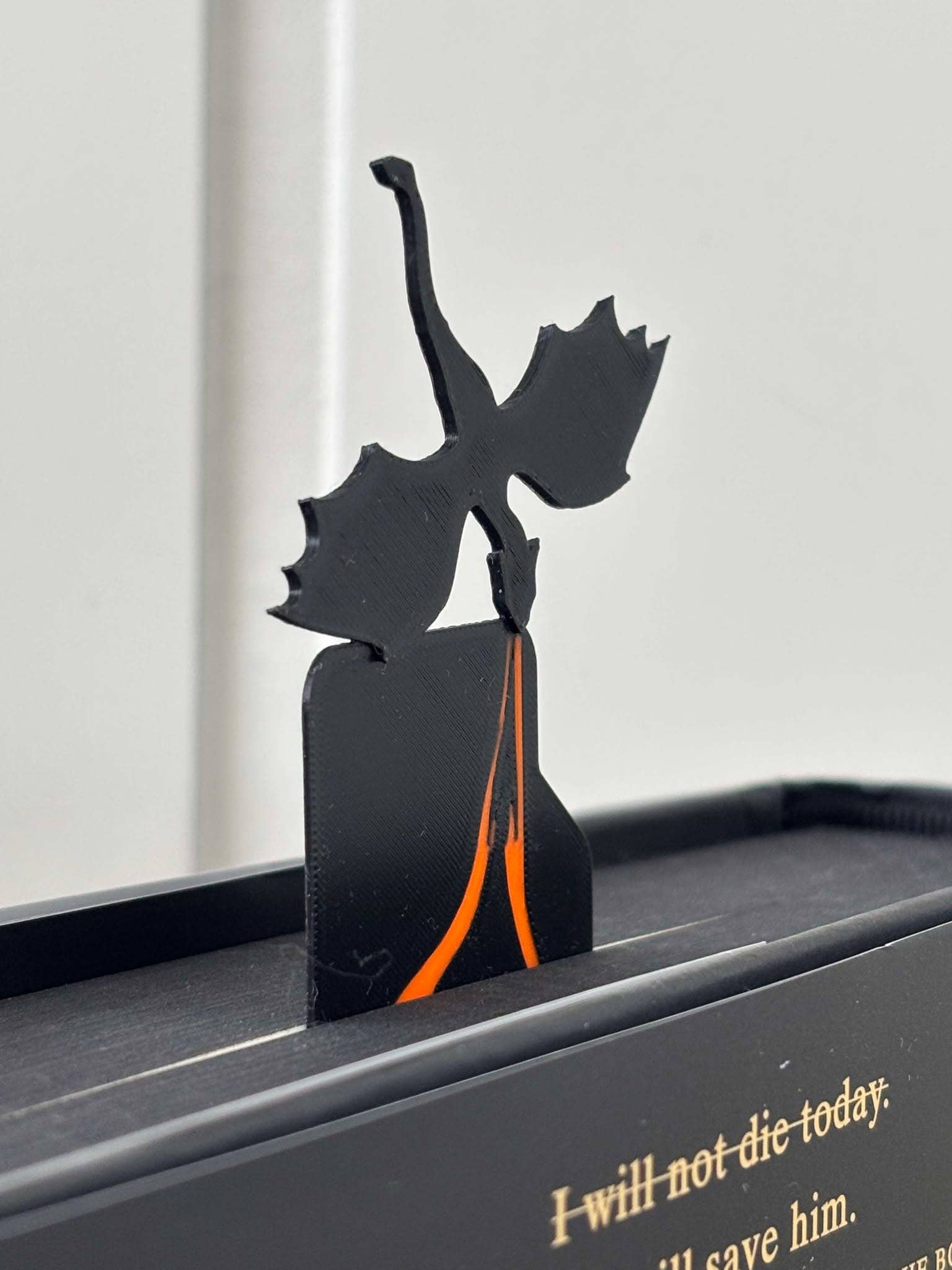 Poziționează semnul în cartea ta preferată și lasă dragonul să iasă deasupra filelor, adăugând puțină magie și dramatism bibliotecii sau colțului tău de lectură.