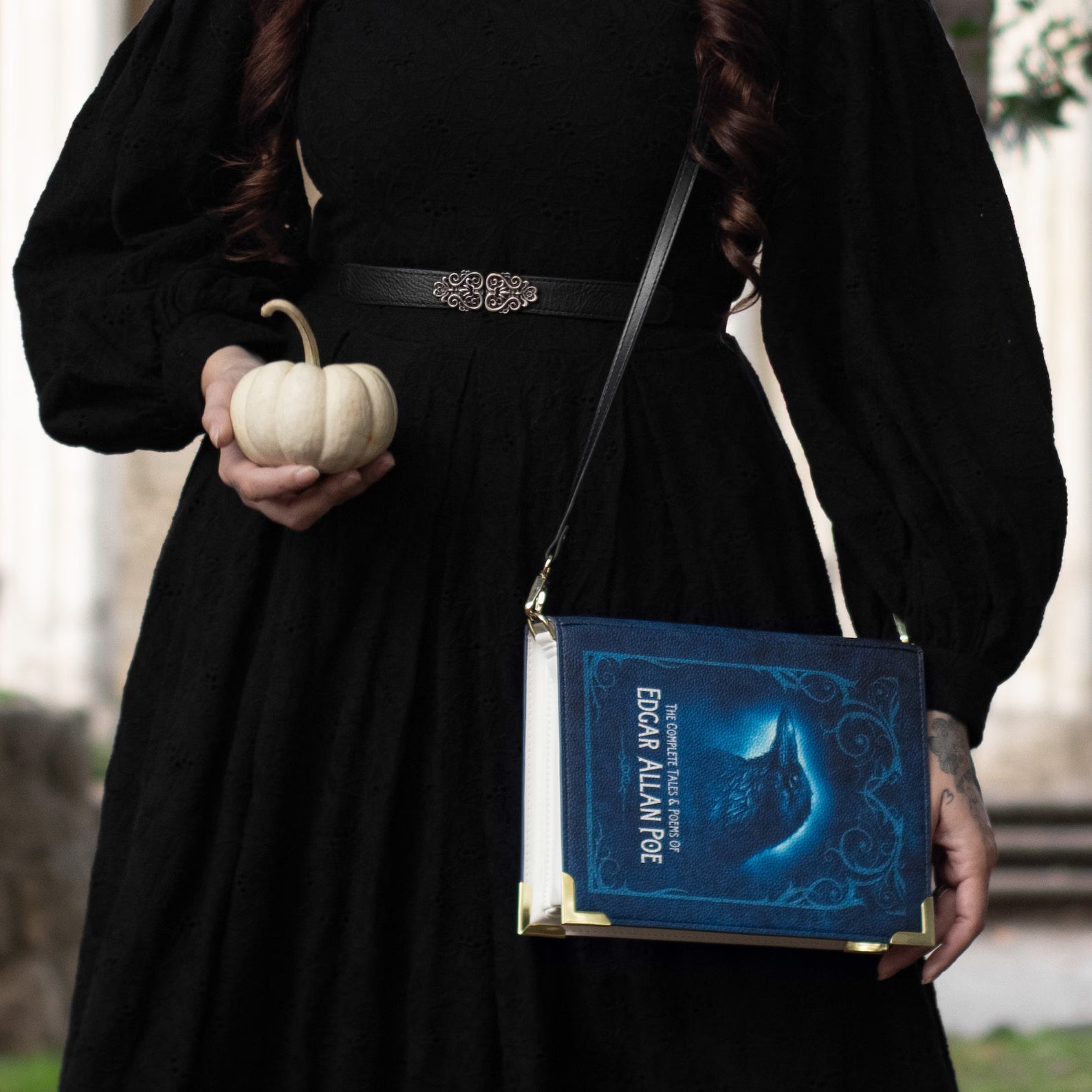Celebrează unul dintre eroii literaturii americane cu această geantă impresionantă, care prezintă „The Complete Tales and Poems of Edgar Allan Poe”.