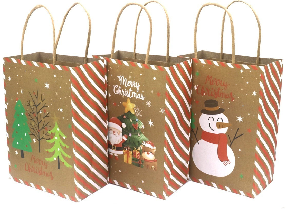 Adaugă farmec sărbătorilor cu setul de 3 pungi cadou de Crăciun din hârtie, perfecte pentru ambalarea elegantă și rapidă a darurilor.