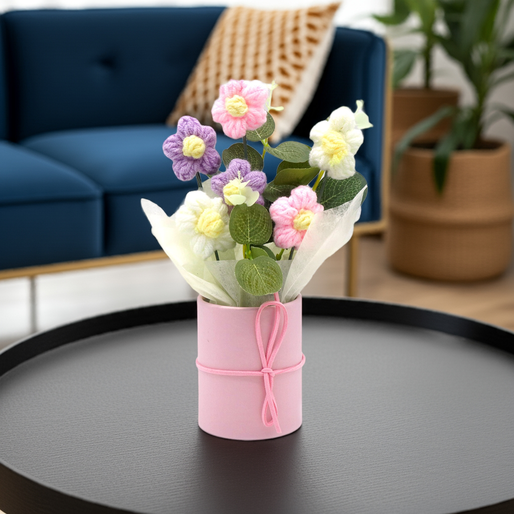 Buchet de flori croșetate Knitted Flowers – Margarete adorabile în ghiveci roz