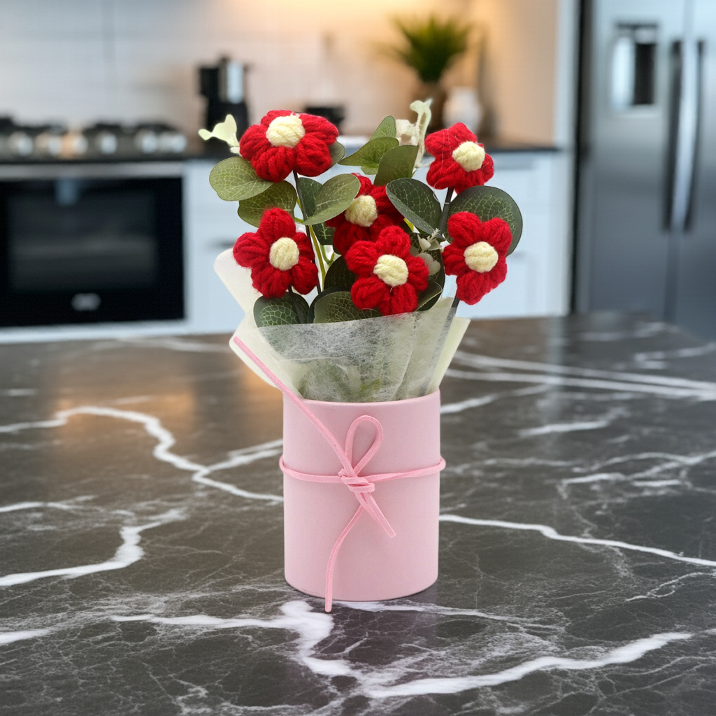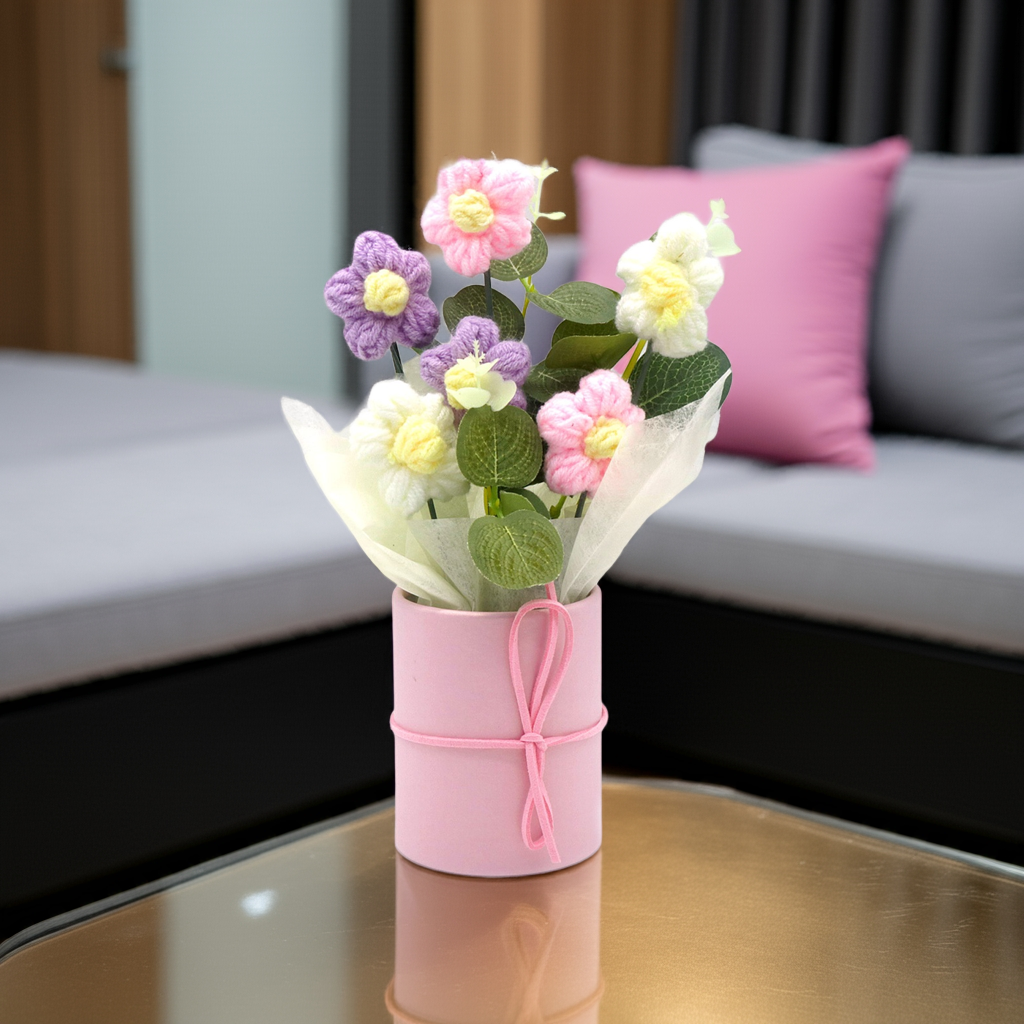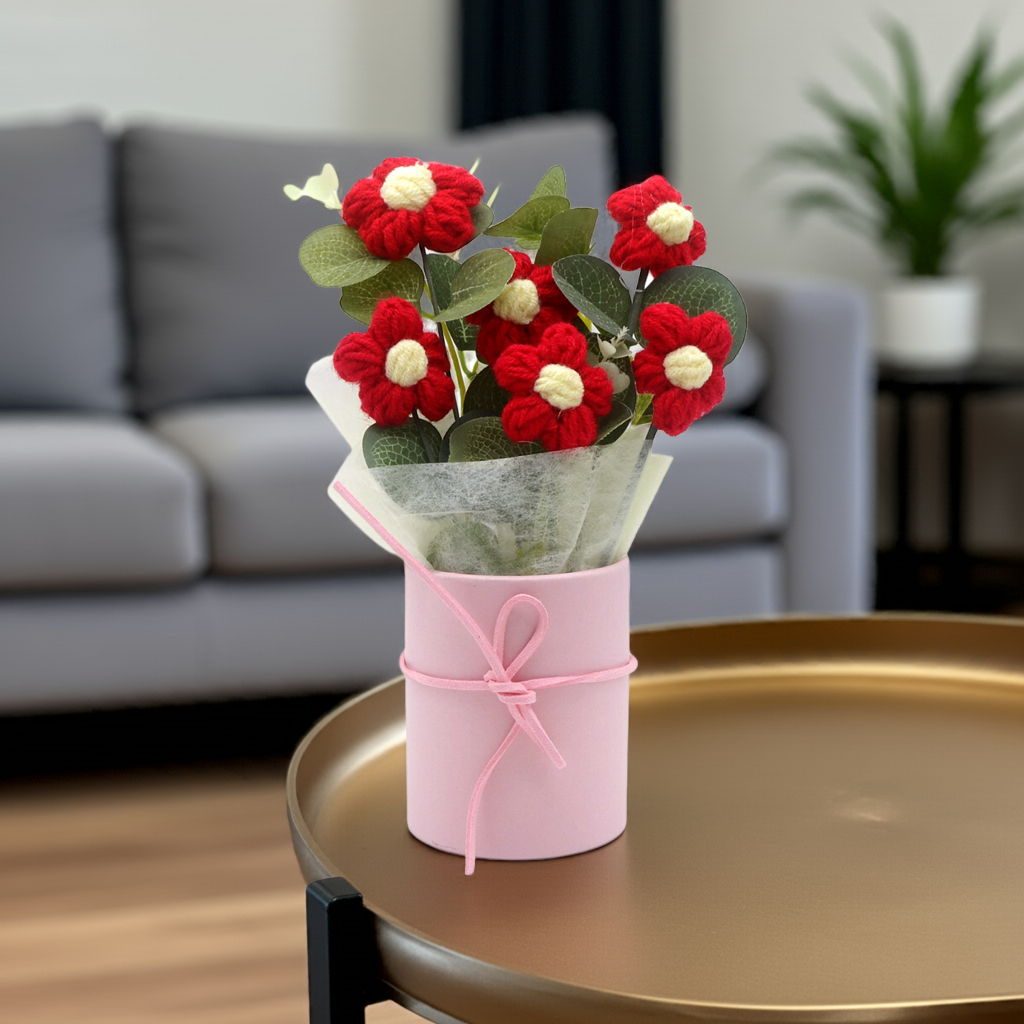 Indiferent dacă vrei să adaugi culoare în living, să creezi un punct de atracție pe masă sau să te bucuri de un proiect creativ, acest buchet de Knitted Flowers va inspira și va aduce zâmbete.