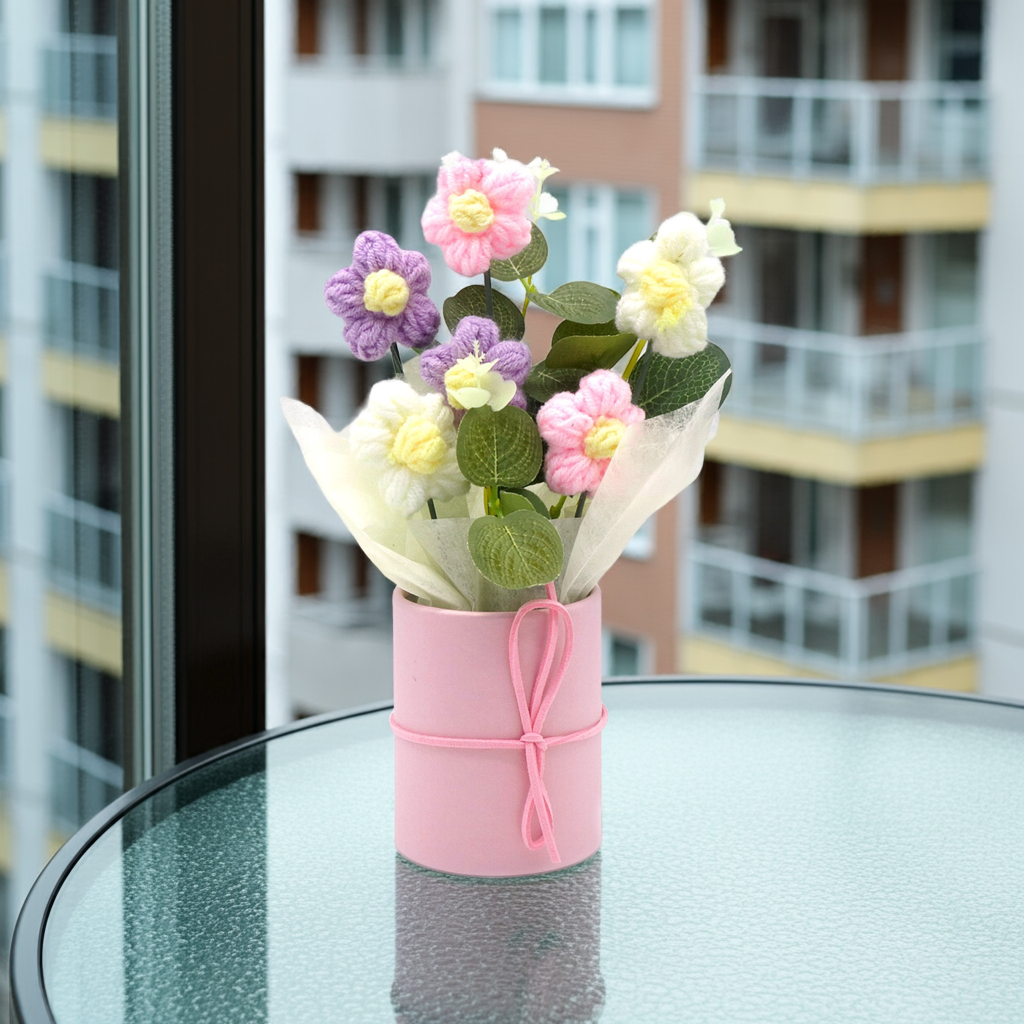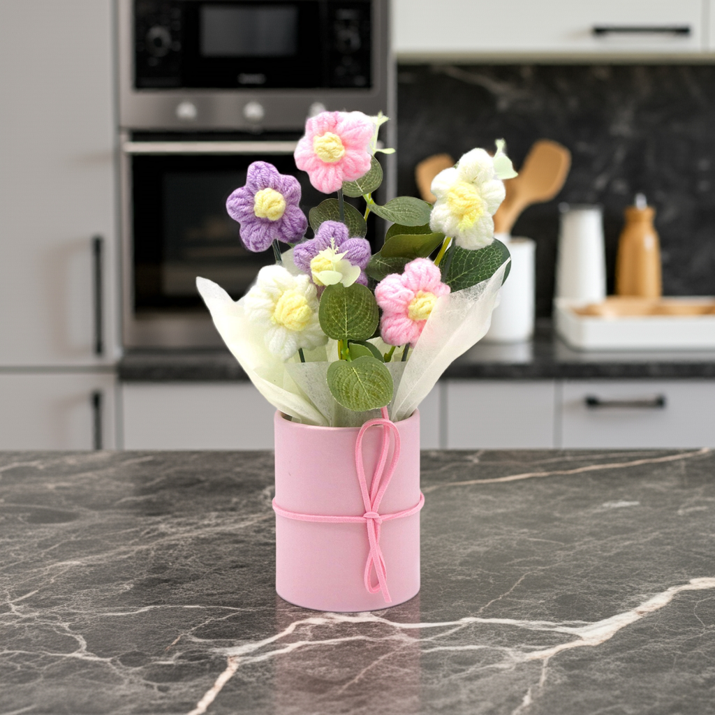 Buchet de flori croșetate Knitted Flowers – Margarete adorabile în ghiveci roz