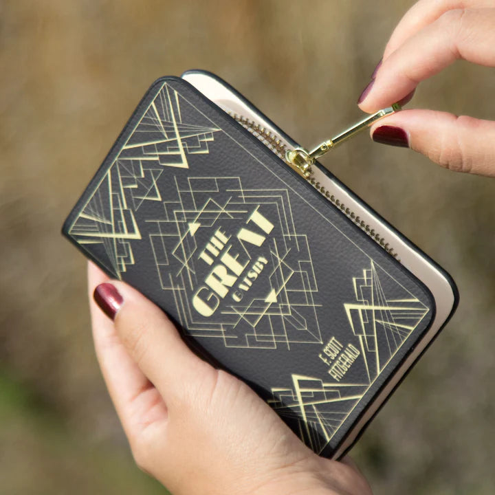 Îmbrățișează-ți pasiunea pentru capodopera lui F. Scott Fitzgerald, The Great Gatsby, cu acest portofel cu fermoar atrăgător.