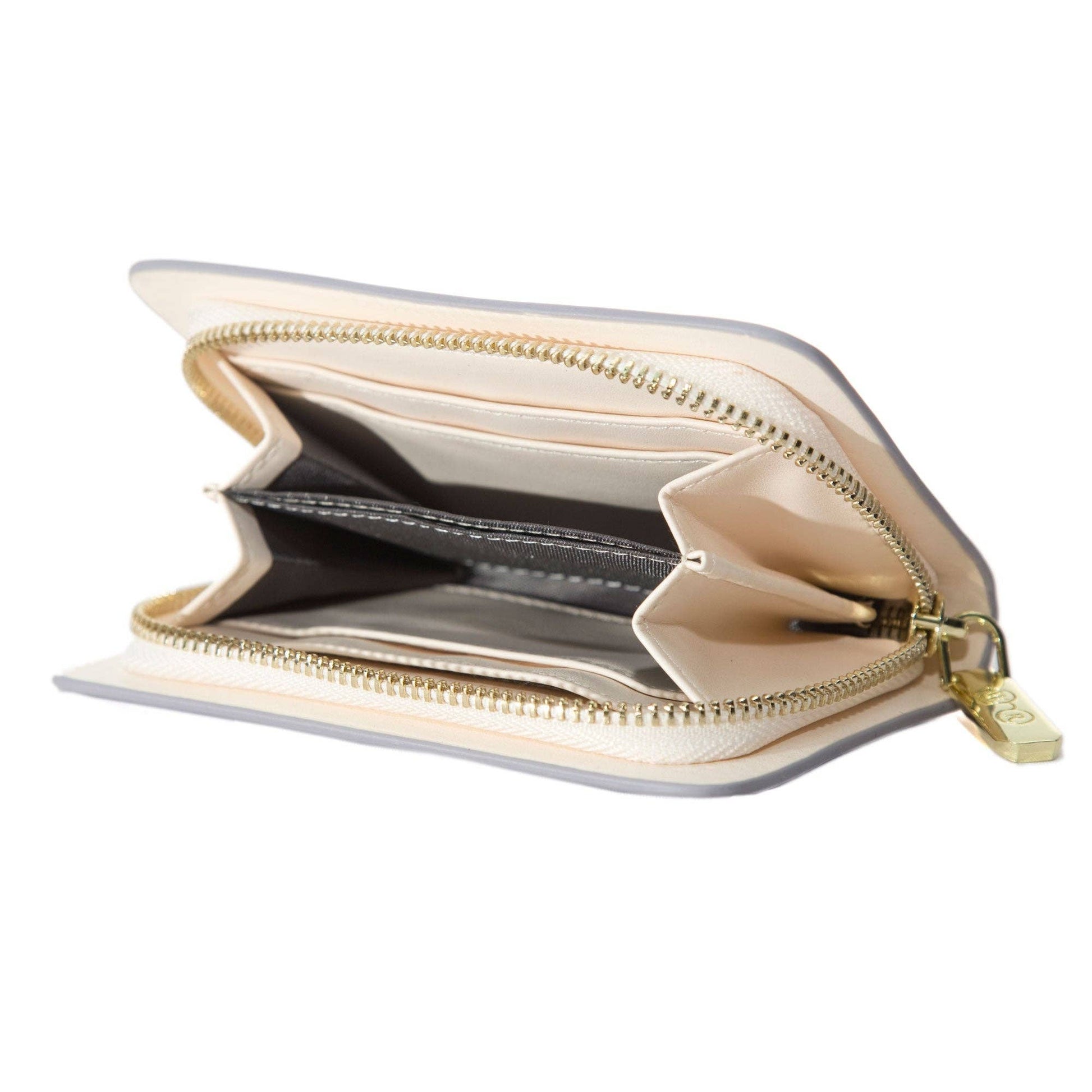 Un frumos design floral ocupă centrul atenției pe acest portofel liliac fermecător, realizat din piele vegană.