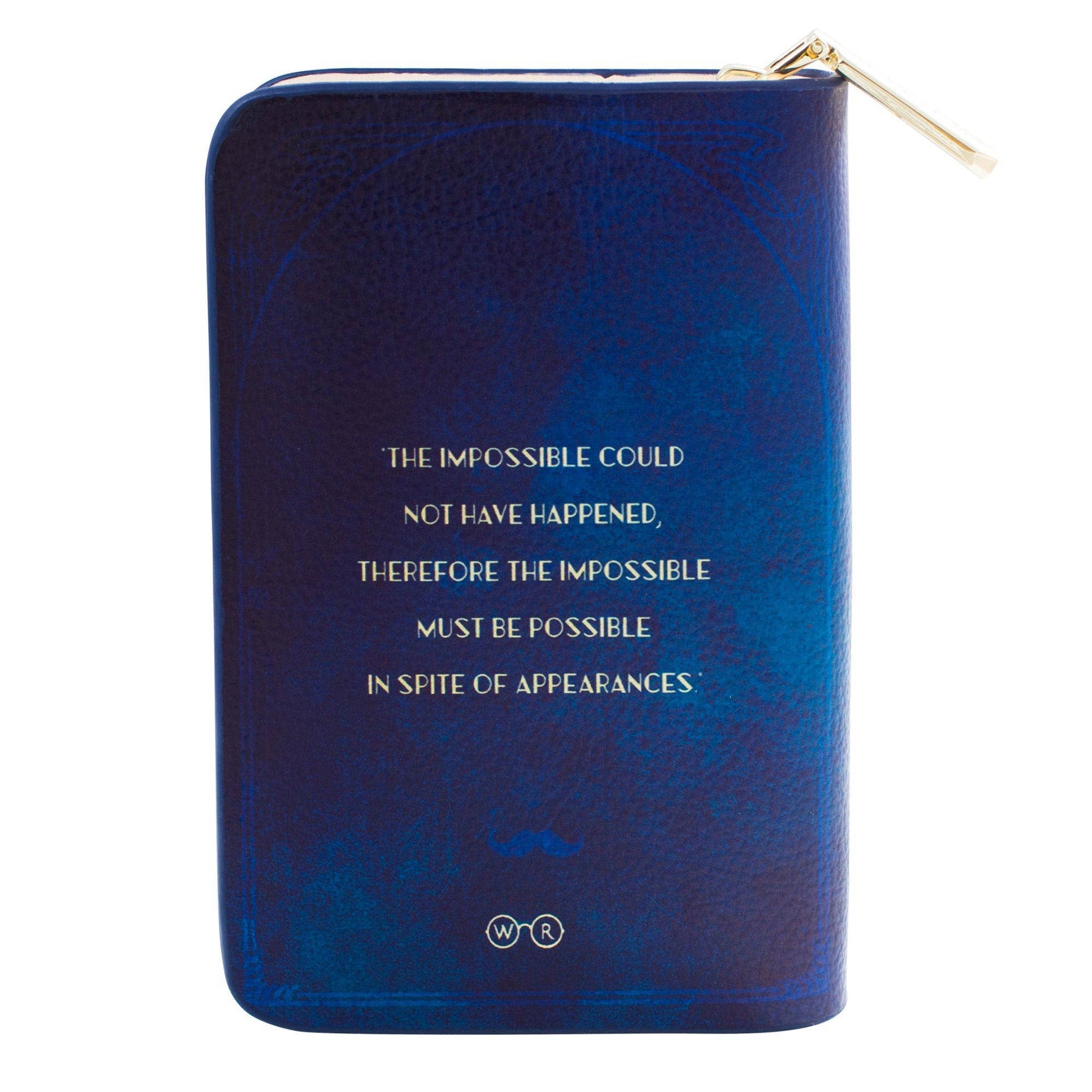 Pe spatele portofelului este inscripționat citatul fermecător: „The impossible could not have happened, therefore the impossible must be possible in spite of appearances.”