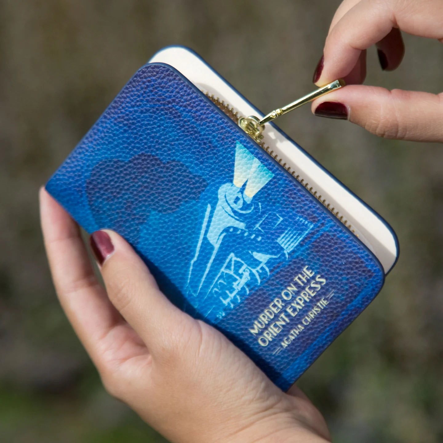 Portofel cu tematică literară – portofelul cu fermoar este inspirat de cărțile cu copertă tare și este realizat din piele ecologică.