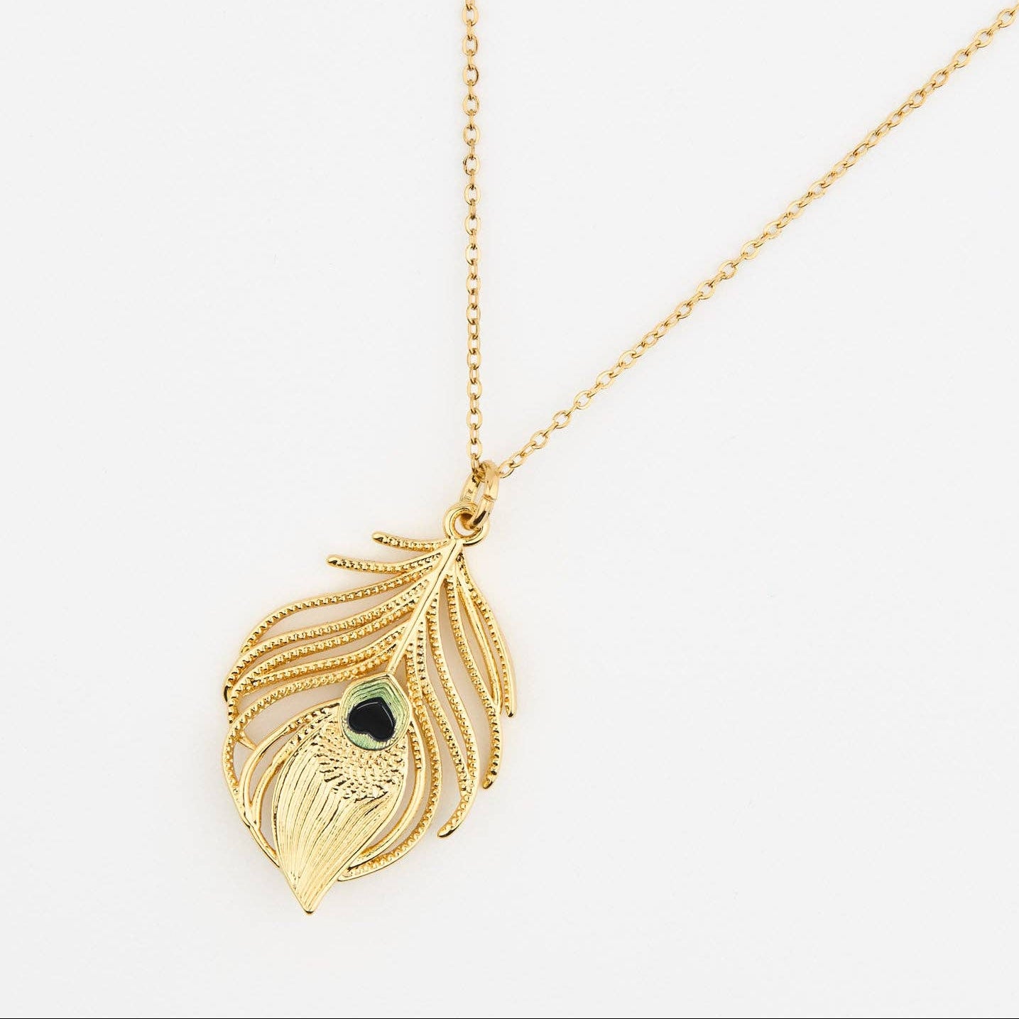 Creat pentru a celebra pasiunea ta pentru literatură, lanțul cu pandantiv completează cu grație motivul pană de păun auriu regăsit și pe geanta carte.