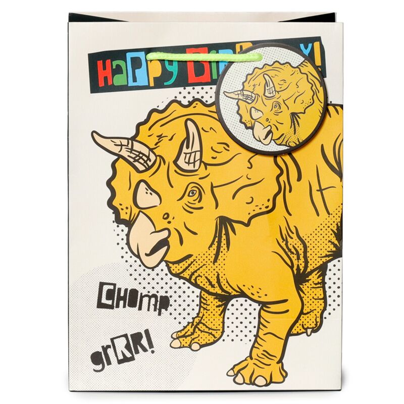 Punga de cadou „Happy Birthday Dinosauria” aduce zâmbete și entuziasm chiar din momentul în care este înmânată.