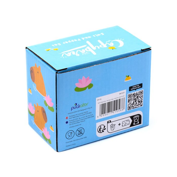 Acest set de sare și piper Capybara combină utilitatea cu farmecul decorativ, fiind un cadou ideal pentru orice bucătărie cu suflet. Adaugă-l în colecția ta sau oferă-l cuiva drag – va aduce cu siguranță un zâmbet!