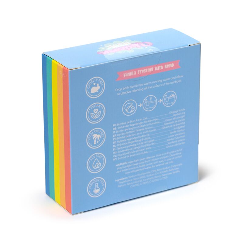 Pe măsură ce bomba se dizolvă, eliberează treptat toate culorile curcubeului, transformând baia într-un moment magic și plin de farmec.