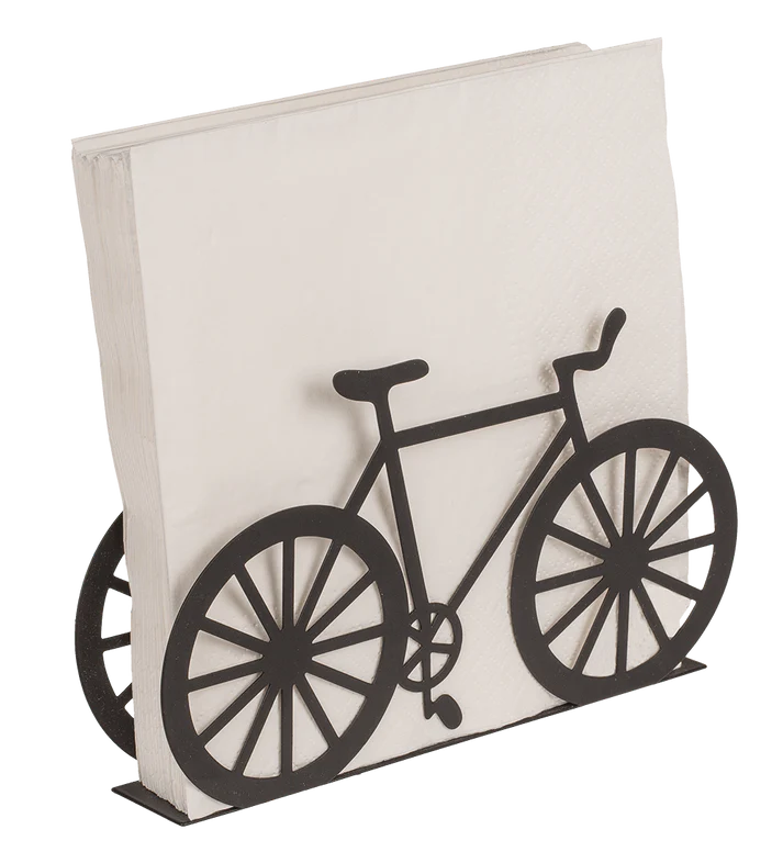 Suport pentru șervețele realizat din metal, cu design decorativ în formă de bicicletă, potrivit pentru mesele de zi cu zi sau pentru momentele petrecute alături de familie.